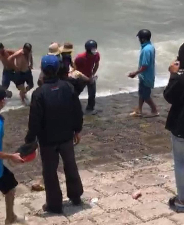 Thời điểm này thủy triều dâng cao, sóng đánh mạnh. Có 4 công nhân nữ bị sóng đánh trôi xuống biển, những người còn lại hô hoán và nhảy xuống cứu.