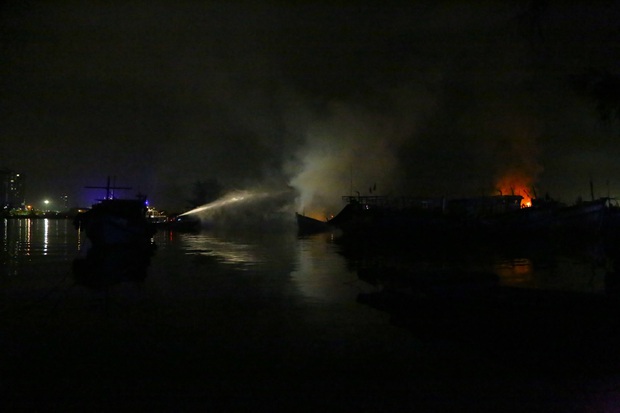 Thời điểm này đang có gió, khiến ngọn lửa lan nhanh sang 3 tàu khác ở sát bờ là ĐNa-90240 TS, ĐNa-90546 TS và ĐNa-90646 TS.