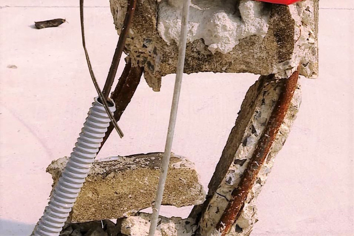 Thực tế tai đây cho thấy, dọc con đường bê-tông vừa được làm mới, khang trang có tới khoảng 40 cột điện đứng chình ình ngay giữa đường. Những cây cột điện này dạng trụ tròn có, vuông có, thậm chí có nhiều cây đã nghiêng, gãy chân lòi cả sắt thép bên trong.