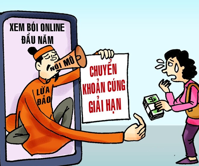 Đầu năm mới Ất Tỵ 2025, chiêu thức lừa đảo xem bói online, dâng sao giải hạn lại nở rộ. Thủ đoạn của các đối tượng là gọi điện tự nhận là "cô đồng" tại các chùa, đền; dọa dẫm người dân về việc họ có các vấn đề về tâm linh (có vong theo, vận hạn liên quan đến sức khỏe, tài chính…); mời chào, dụ dỗ người dân xem bói, làm lễ giải hạn hoặc nhận các vật phẩm phong thủy.
