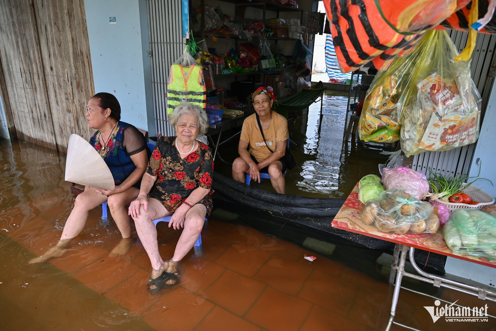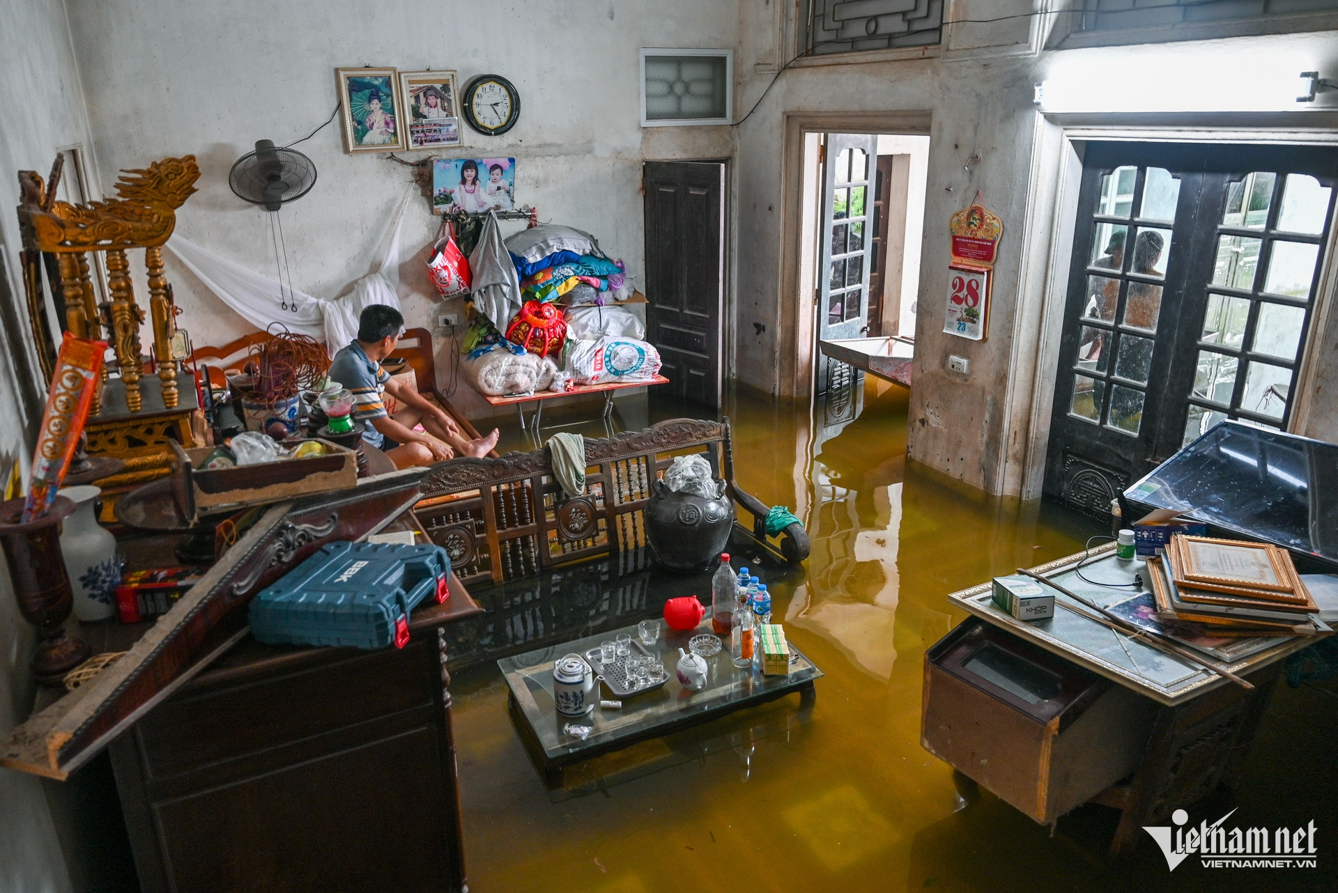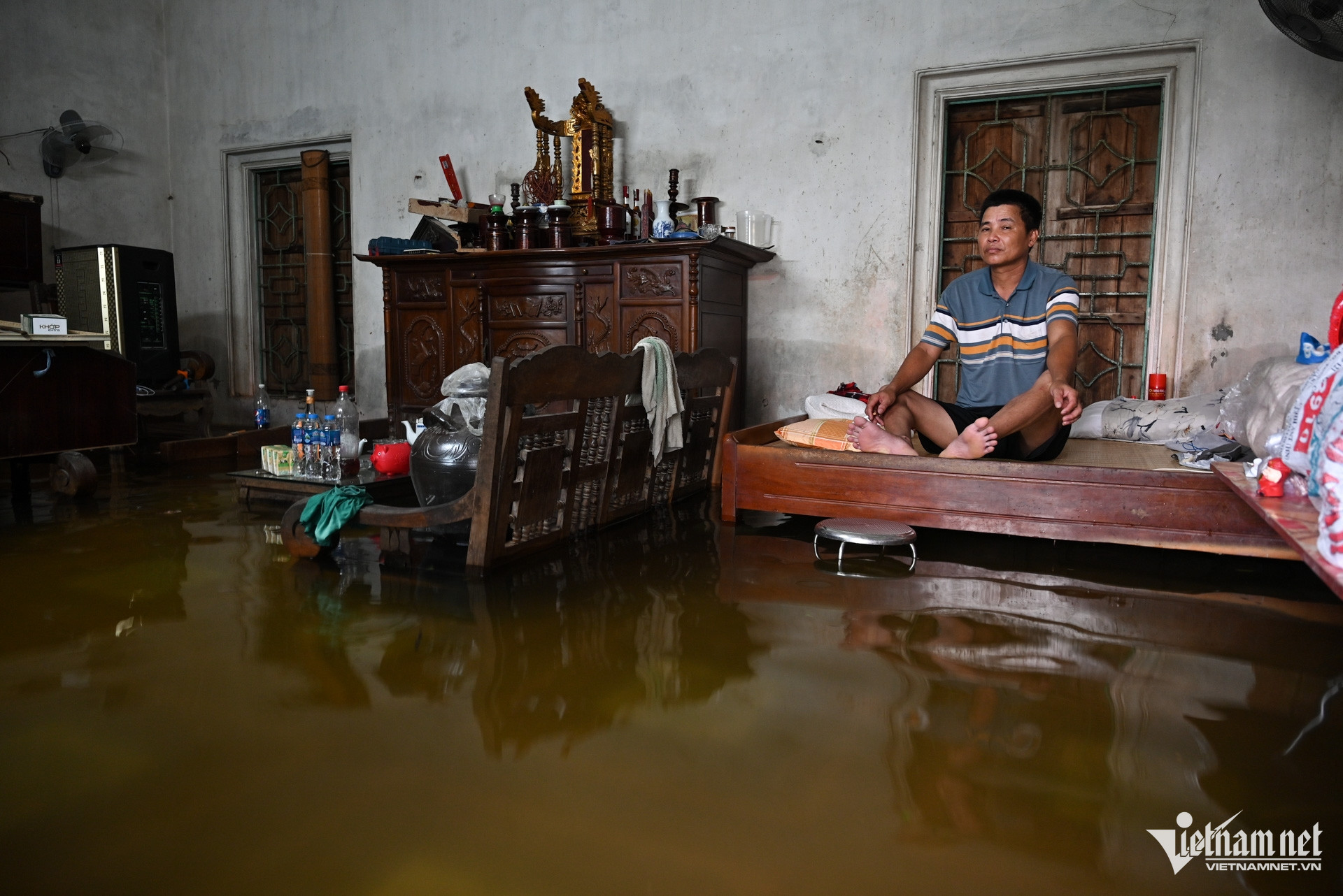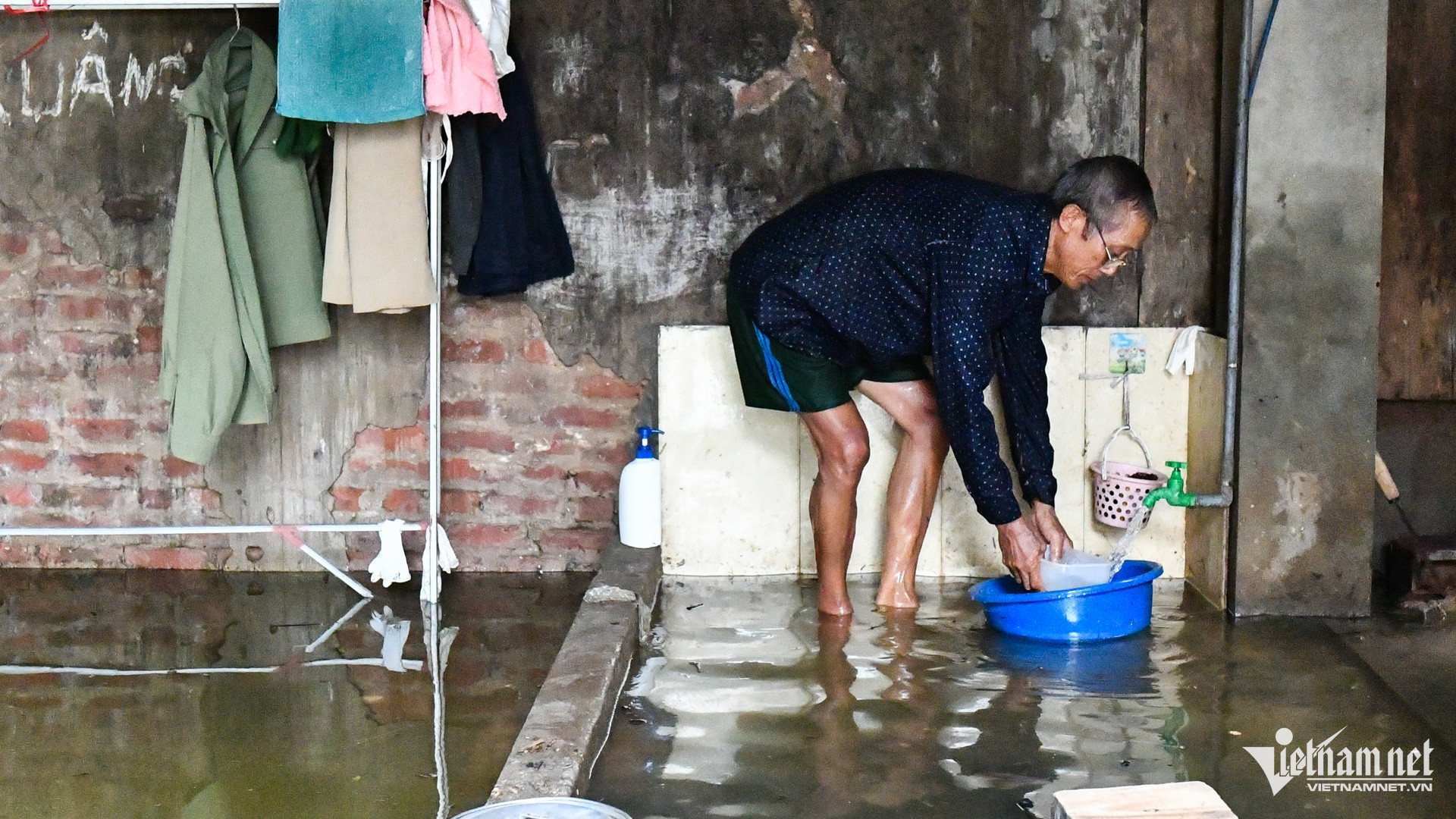 Sân ngập nước, ông Thực bì bõm lội quanh để đi rửa bát rồi vào nghỉ. Trong nhà, nước mấp mé sấp tới mắt cá chân. Chính quyền địa phương có kêu gọi bà con nếu nhà nào ngập cao quá có thể dọn tới nhà văn hóa thôn để ở tạm mấy ngày chờ nước rút nhưng vì còn việc đồng áng và trông nom nhà cửa nên ông Thực vẫn ở lại.