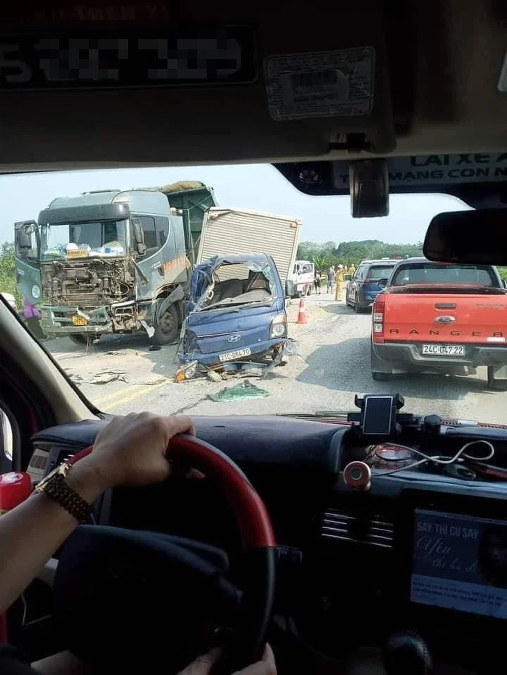 Theo đó, đoạn đường đang sửa chữa mặt đường, bên thi công đang phân luồng. Thời điểm trên, 4 xe ô tô đang đỗ theo hiệu lệnh phân luồng, thì bị xe tải ben lao vào khiến 4 phương tiện hư hỏng nặng.