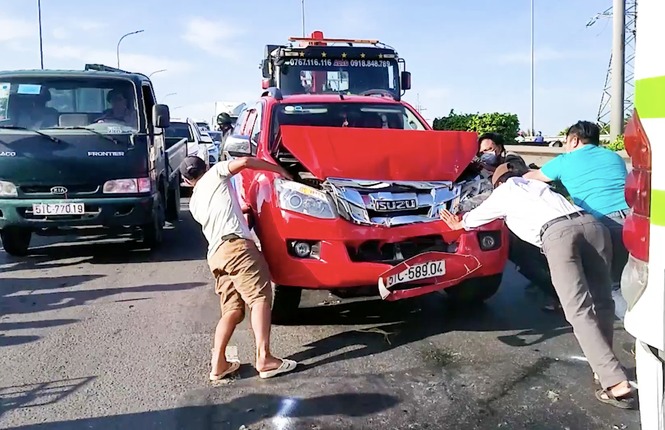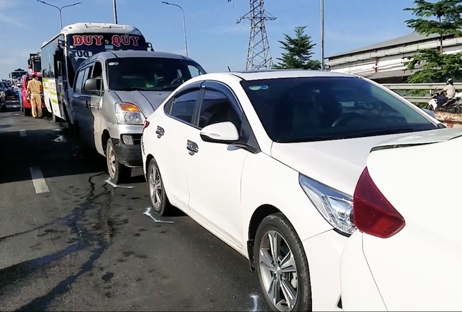 Thời điểm trên, ô tô 4 chỗ lưu thông trên Quốc lộ 1 hướng từ tỉnh Long An về TP.HCM. Khi đến dốc cầu Bình Điền thì bị 1 xe chạy phía sau đâm vào đuôi.