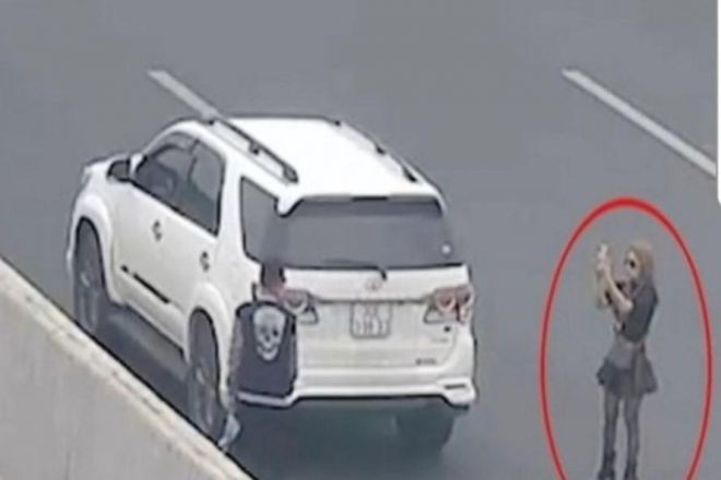 Hình ảnh người phụ nữ dừng xe rồi thản nhiên đứng ra giữa đường cao tốc chụp ảnh gây nguy hiểm cho các xe chạy trên cao tốc Hà Nội - Hải Phòng, khiến dư luận bức xúc. Hình ảnh này đã được camera trên tuyến ghi lại.