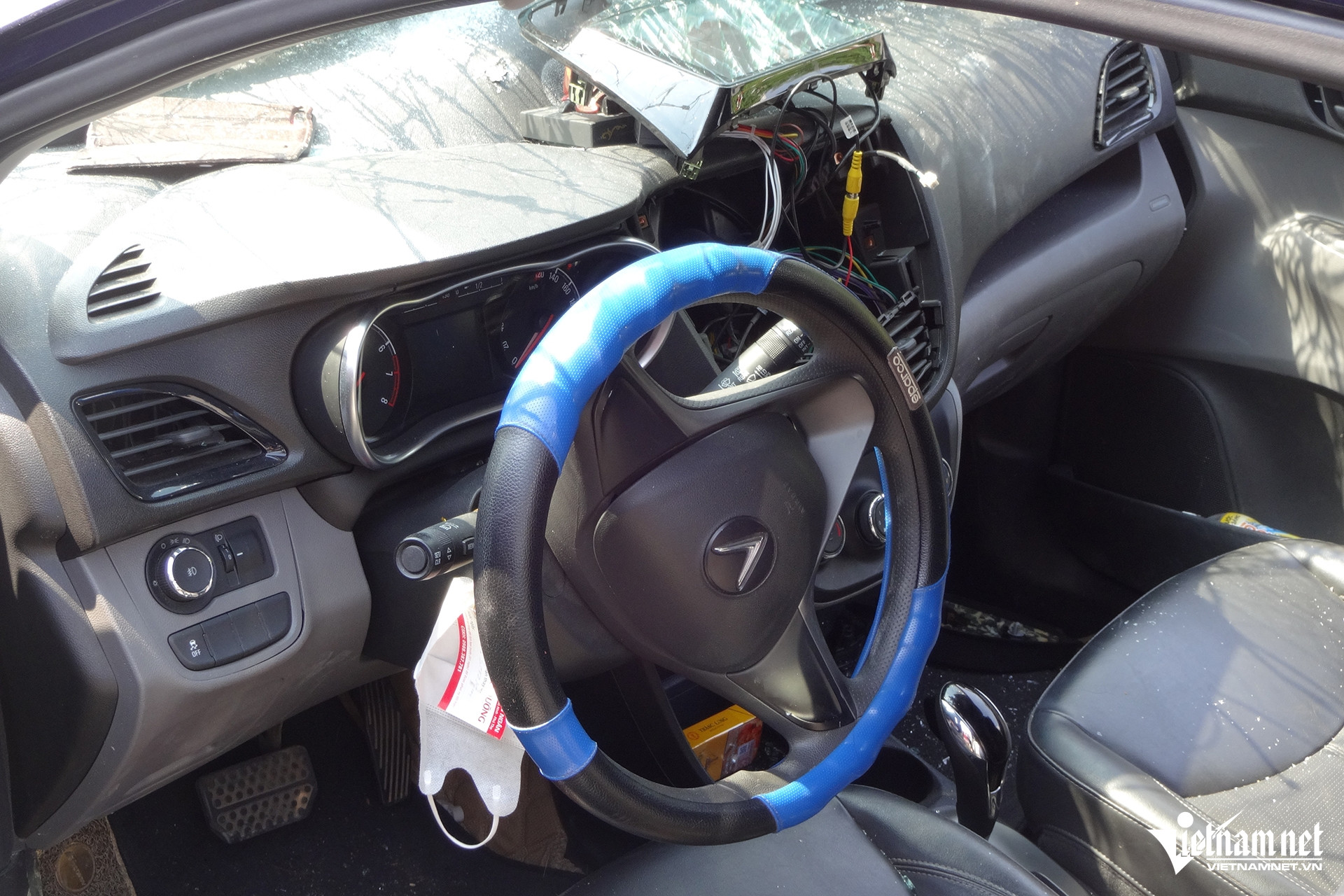 "Tôi nhanh chóng chạy vào xí nghiệp bê tông ở gần đó lấy xà beng để bẩy cánh cửa ô tô, cứu người bên trong. Trong xe có 1 nữ và 3 nam bị thương nhẹ", anh Nguyễn Ngọc Uy nói.
