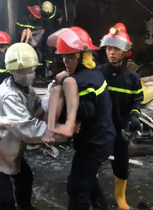 "Mọi người hô hoán vì nghi có nạn nhân kẹt bên trong. Nhiều người dùng xà beng phá cửa cuốn nhưng không được", nhân chứng Mai Đức Dũng cho biết.