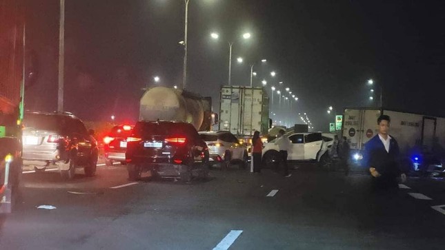 Theo đó, tai nạn giao thông liên hoàn xảy ra vào khoảng 22h tối 4/11 giữa 5 xe ô tô con với 1 xe đầu kéo và 1 xe tải tại Km 204+600 cao tốc Pháp Vân - Cầu Giẽ - Cao Bồ - Mai Sơn theo hướng về Hà Nội, đoạn gần trạm thu phí Vạn Điểm thuộc địa phận xã Minh Cường (huyện Thường Tín, Hà Nội).