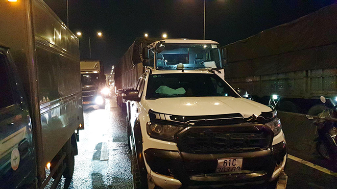 Đến hơn 21h, hiện trường vẫn chưa được giải quyết xong, khiến giao thông trên quốc lộ 1 ùn tắc kéo dài nhiều km.
