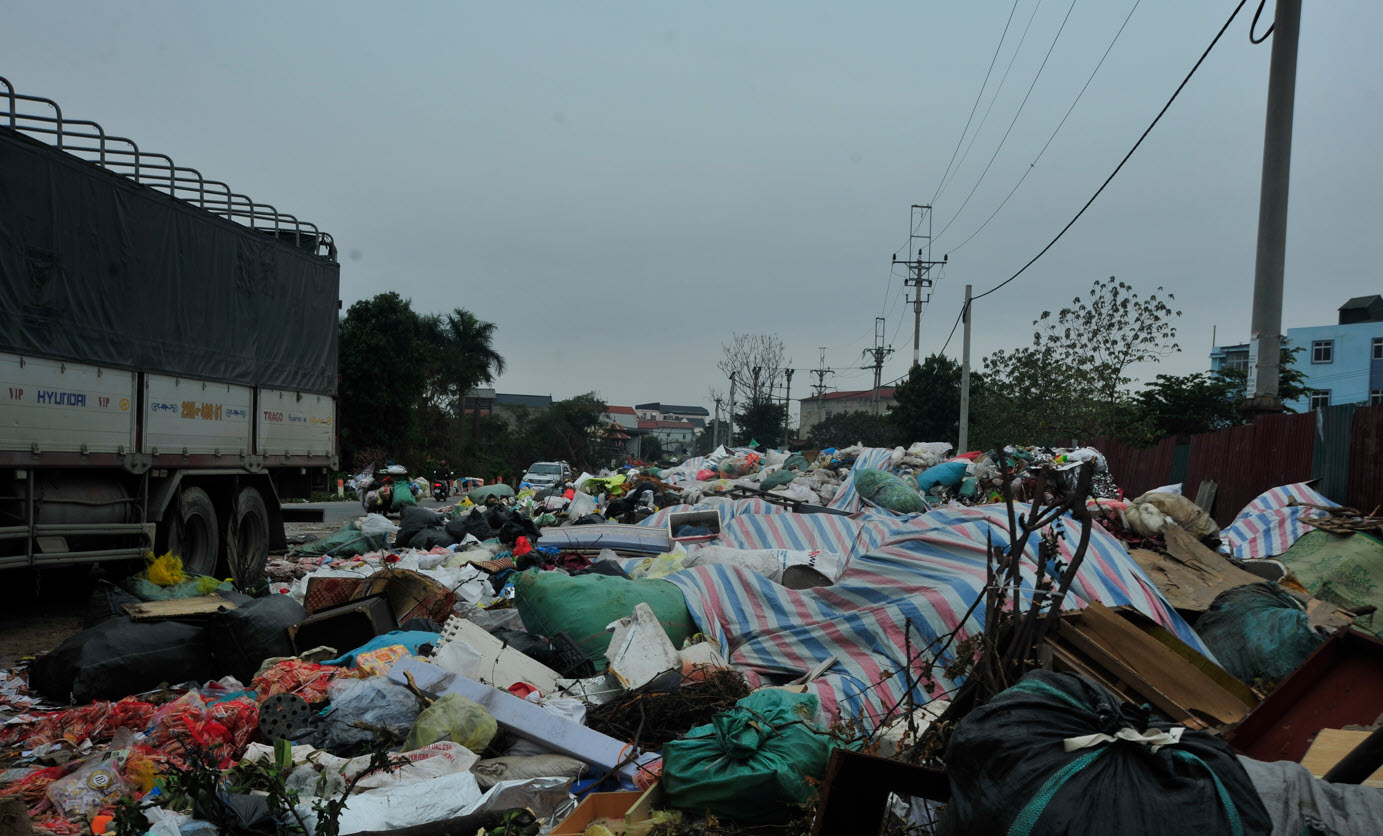 Trước Tết Nguyên đán, UBND xã đã huy động lực lượng để dọn rác thải nhưng vẫn không xuể nên xảy ra tình trạng rác tràn ra đường như hiện nay.