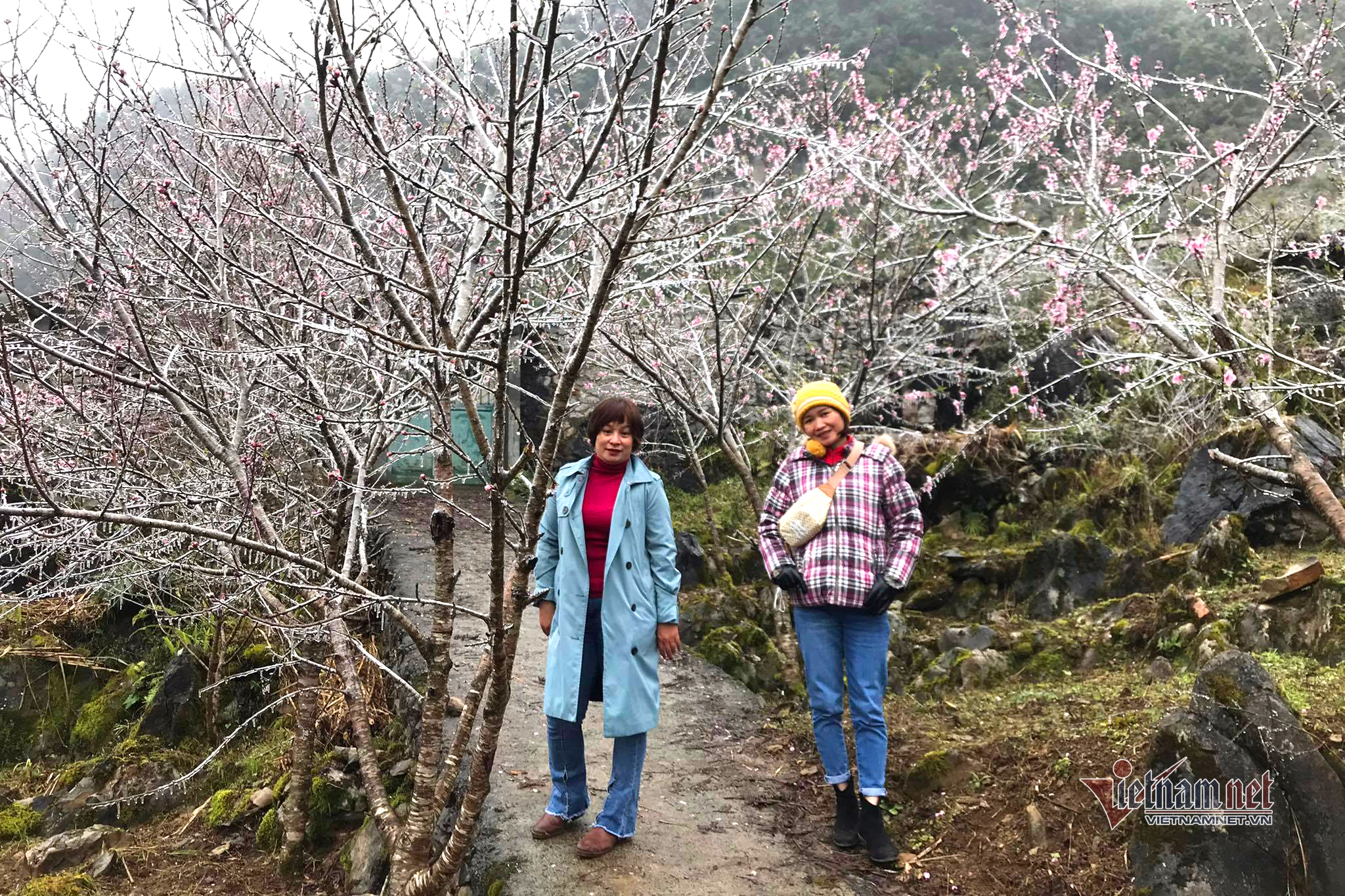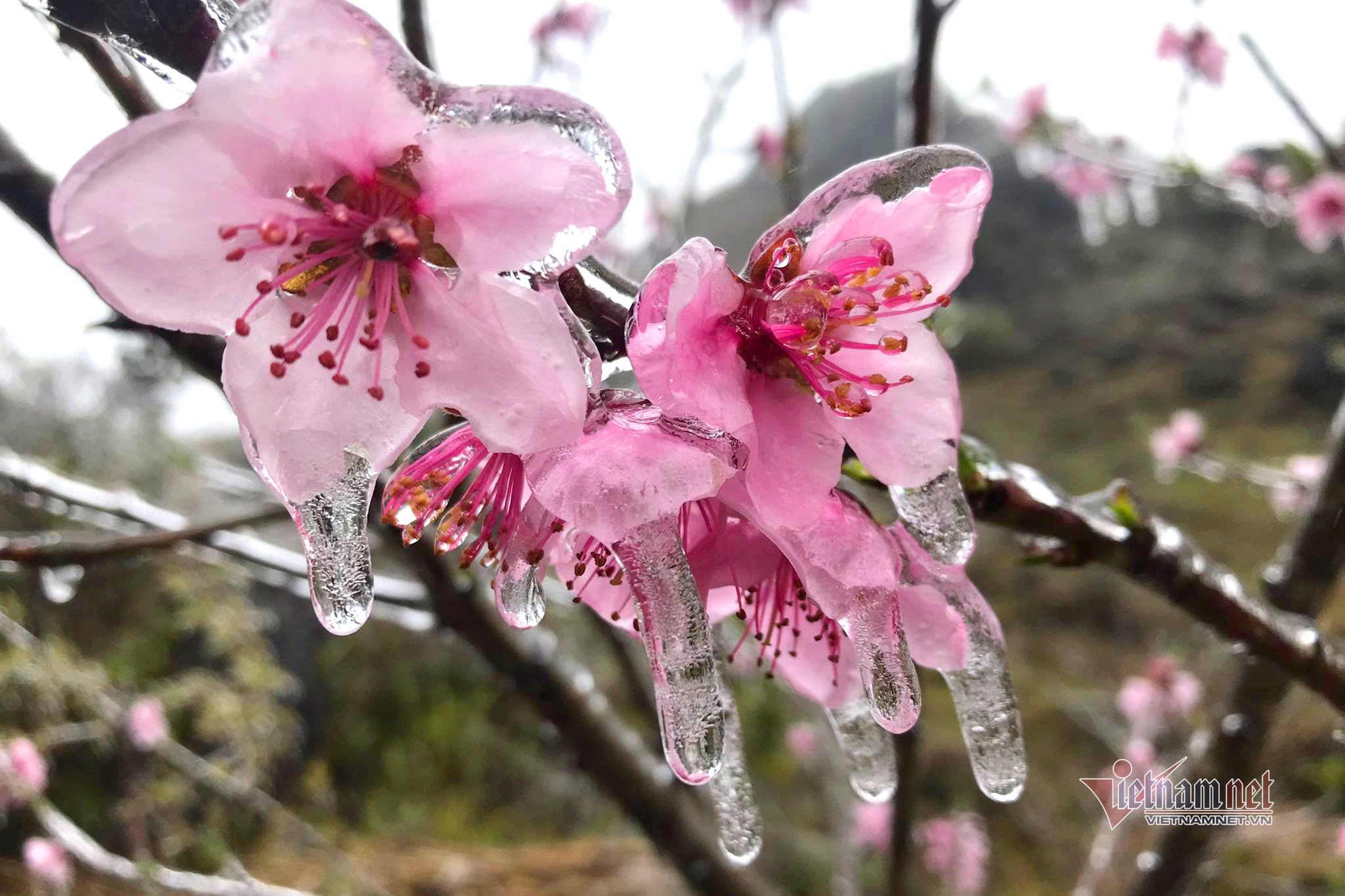 Nhiệt độ giảm mạnh từ đêm qua đến hôm nay khiến băng giá xuất hiện tại huyện Đồng Văn, Hà Giang. Nhiều du khách nhanh chóng tới đây ngắm hoa đào đóng băng.