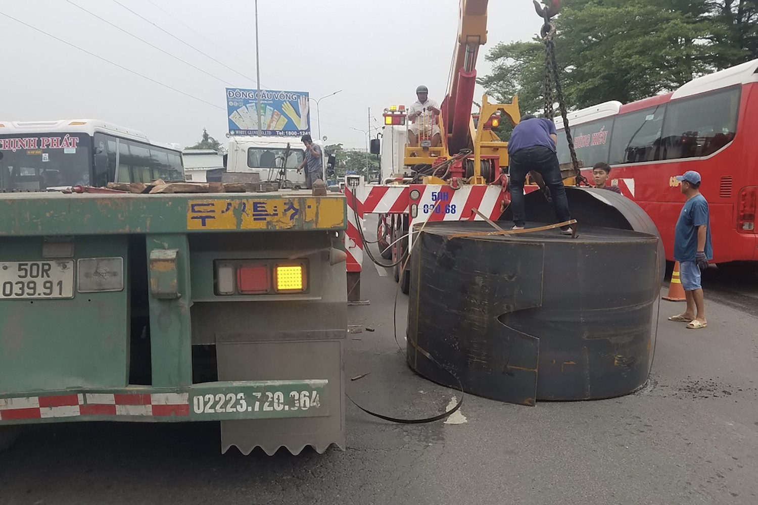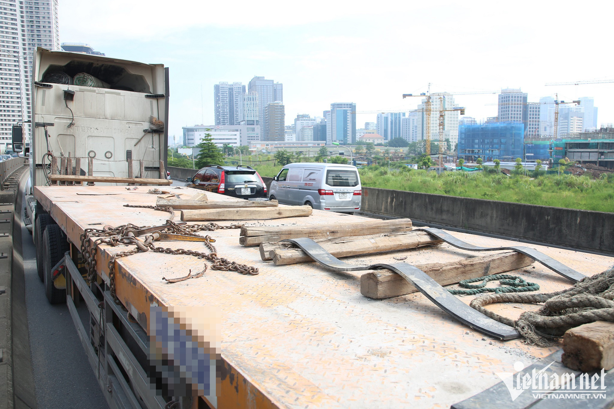 Cụ thể, sáng 9/8, tại đường Vành đai 3 trên cao (đoạn qua quận Nam Từ Liêm, Hà Nội), xe đầu kéo kéo chở 2 cuộn thép, lưu thông hướng Hoàng Mai đi cầu Thăng Long. Xe phanh gấp đã làm 2 cuộn thép bị đứt xích neo và rơi xuống đường. Tai nạn đã làm hư hỏng mặt đường và ùn tắc đường Vành đai 3 nghiêm trọng trong nhiều giờ.