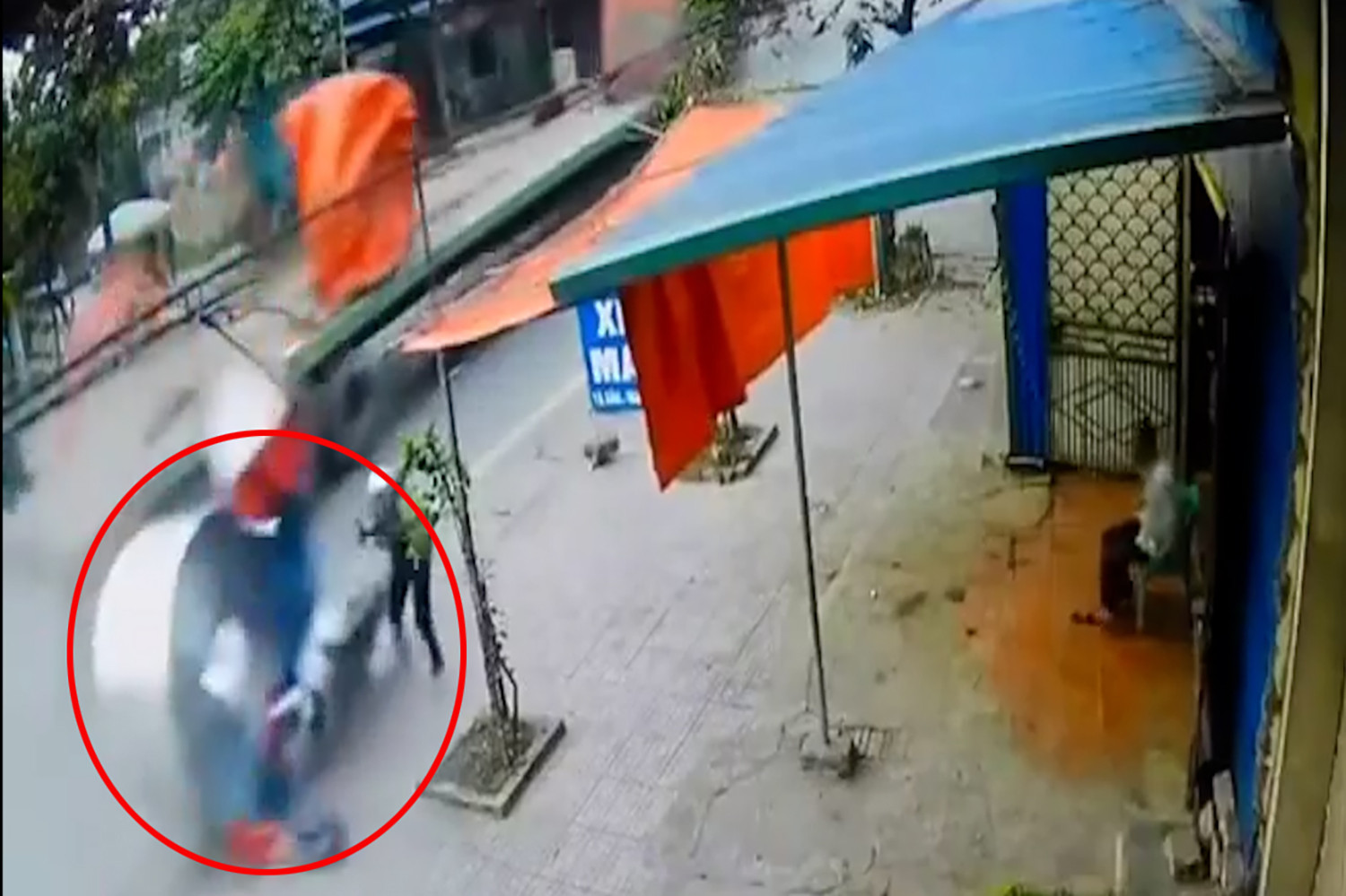 Thời điểm trên, ô tô đầu kéo mang biển số 88H-108.XX đang chở 2 cuộn thép. Đến khu vực ngã tư Tân Hương, xích chằng bị đứt khiến 2 cuộn thép nặng hàng chục tấn lăn xuống đường. Người phụ nữ điều khiển xe máy đang lưu thông ở hướng ngược chiều đã kịp thời né tránh. Cuộn thép lăn qua xe máy của người này. Vụ tai nạn không gây thiệt hại về người nhưng chiếc xe máy bị hư hỏng.