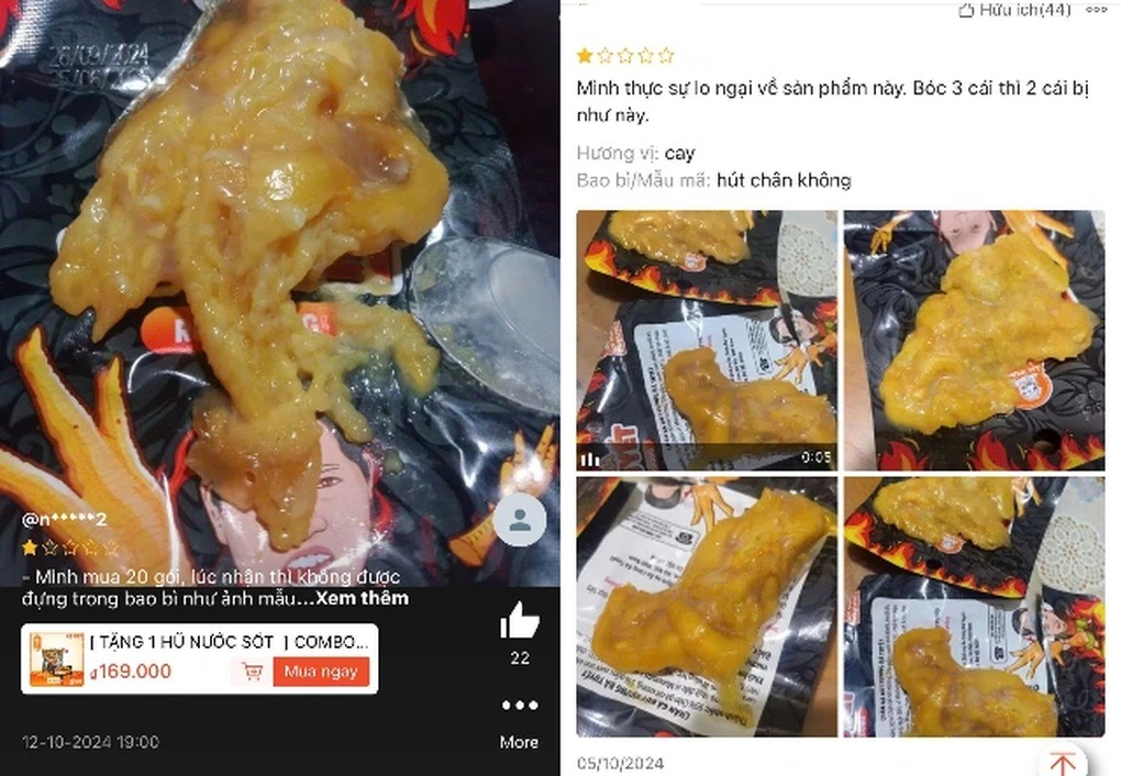 Ngoài ra, vào tháng 3, một khách hàng phát hiện gói chân gà in ngày sản xuất là 9/7, tức 4 tháng sau thời điểm mua hàng, gây ra nghi vấn về việc in sai hoặc sửa đổi ngày sản xuất. Một trường hợp khác vào tháng 3/2024, khách hàng phản ánh tìm thấy dị vật trong sản phẩm, tuy nhiên thương hiệu cho biết đã liên hệ xin mẫu để xét nghiệm nhưng không nhận được do khách hàng đã vứt bỏ.