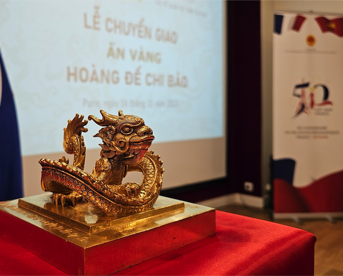 Bộ VH-TT-DL cho biết chiều 16-11, tại Đại sứ quán Việt Nam tại Pháp, Bộ trưởng Bộ Văn hóa Thể thao và Du lịch Nguyễn Văn Hùng, Đại sứ Việt Nam tại Pháp Đinh Toàn Thắng, Trưởng Phái đoàn Việt Nam bên cạnh UNESCO Lê Thị Hồng Vân, Cục trưởng Cục Di sản văn hoá Lê Thị Thu Hiền, đại diện Bộ Công an (Việt Nam) và Đại diện Bộ Ngoại giao Pháp, đại diện UNESCO đã chứng kiến buổi lễ Chuyển giao Ấn vàng "Hoàng đế chi bảo" cho Việt Nam.