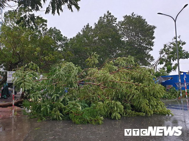 Tại các địa phương khác, từ chiều qua, khi bão chưa đổ bộ, tại các tuyến đường trung tâm tỉnh Quảng Ngãi, mưa lớn kèm gió mạnh khiến hàng loạt cây cổ thụ bật gốc.