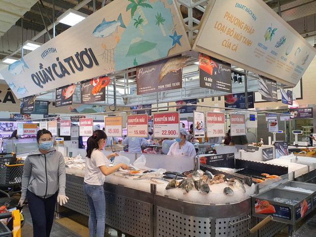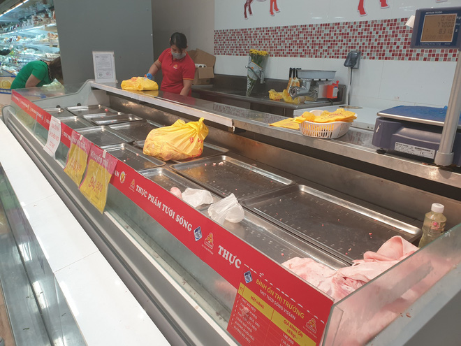 Trong khi đó, tại các cửa hàng, siêu thị như Big C, Co.op mart (quận Tân Phú) cũng diễn ra tình trạng tương tự khi một số quầy hàng tươi sống "hết sạch".