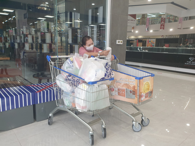 Trao đổi nhanh, chị Lan (quận Bình Thạnh) cho biết để hạn chế ra đường, chị tính đi siêu thị mua đồ để ăn trong vài ngày tới nhưng do lượng người mua lớn nên đã hết hàng. "Về giá cả chị cũng thấy bình thường, không có tăng là mấy, mọi người cũng không nên hoang mang về thiếu thực phẩm", chị Lan nói.