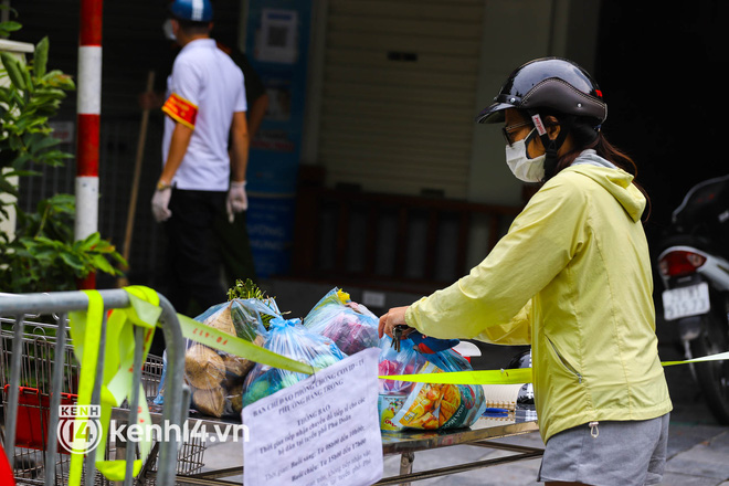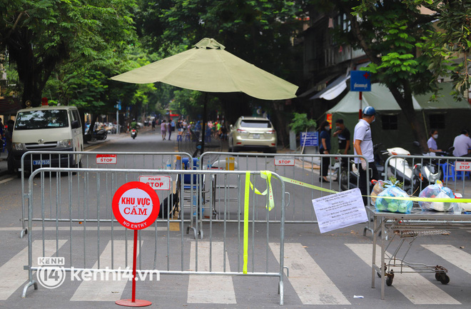 Lực lượng chức năng dựng 2 lều dã chiến tại 2 đầu nút giao Phủ Doãn - Tràng Thi và Phủ Doãn - Hàng Bông để kiểm soát người ra/vào và tiếp nhận nhu yếu phẩm được gửi vào bên trong.