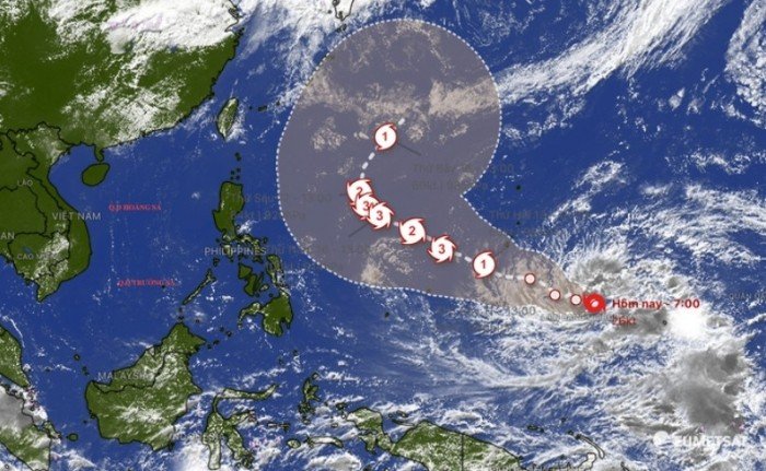 Tại thời điểm trên, ATNĐ đang hoạt động cách Philippines gần 3.000km về phía Đông, với cường độ cấp 7 (50-61 km/h), giật cấp 9. Hệ thống thời tiết này hiện nằm ở rìa phía Đông của lưỡi áp cao cận nhiệt đới – yếu tố có vai trò chi phối hướng di chuyển trong giai đoạn đầu.
