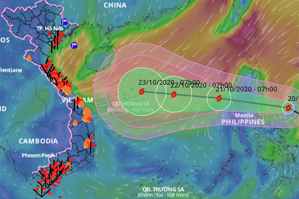 20/10/2020 17:47Áp thấp nhiệt đới thành bão, có lúc giật cấp 14 và hướng vào miền Trung