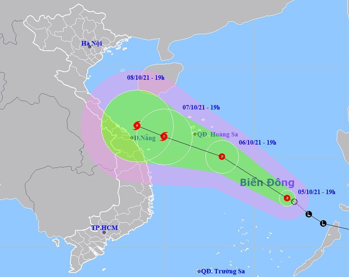 Dự báo trong 24 giờ tới, áp thấp nhiệt đới di chuyển chủ yếu theo hướng Tây Bắc, mỗi giờ đi được khoảng 20 km và có khả năng mạnh thêm. Đến 19 giờ ngày 6-10, vị trí tâm áp thấp nhiệt đới ở khoảng 15,0 độ Vĩ Bắc; 113,2 độ Kinh Đông, cách quần đảo Hoàng Sa khoảng 130 km về phía Đông Nam. Sức gió mạnh nhất vùng gần tâm áp thấp nhiệt đới mạnh cấp 7 (50-60 km/giờ), giật cấp 9.