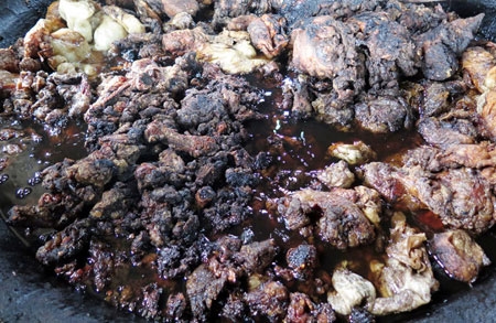 Xương trâu, bò, lợn được chiên cùng mỡ - Ảnh: QUANG THẾ |