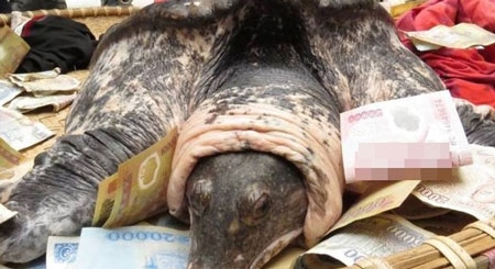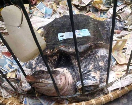 Cá thể nghi là rùa mai mềm được bắt ở Hải Phòng. Ảnh: PLTPHCM. |