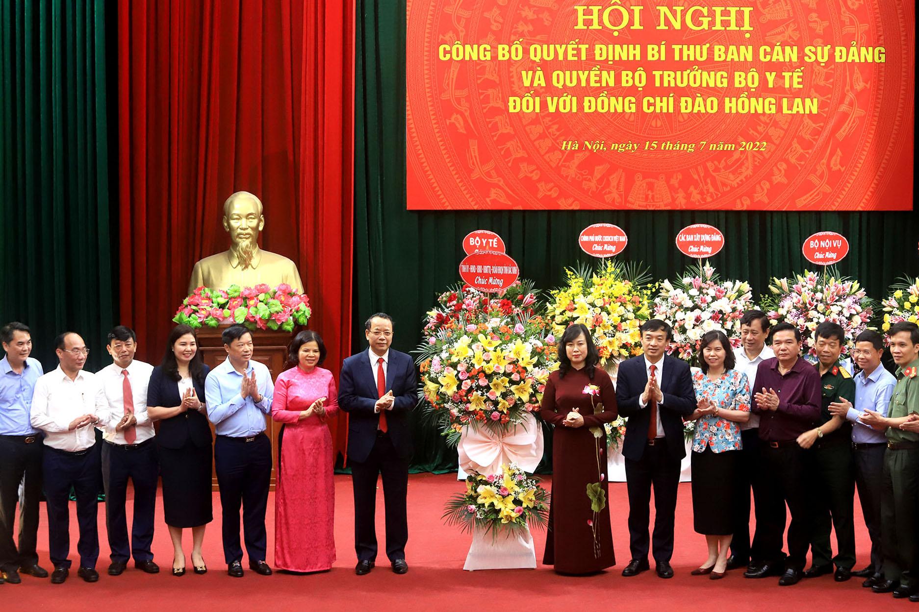 Phát biểu nhận nhiệm vụ, bà Đào Hồng Lan cảm ơn Bộ Chính trị, Thủ tướng đã tin tưởng điều động, phân công bà giữ chức Bí thư Ban Cán sự Đảng, quyền Bộ trưởng Bộ Y tế.