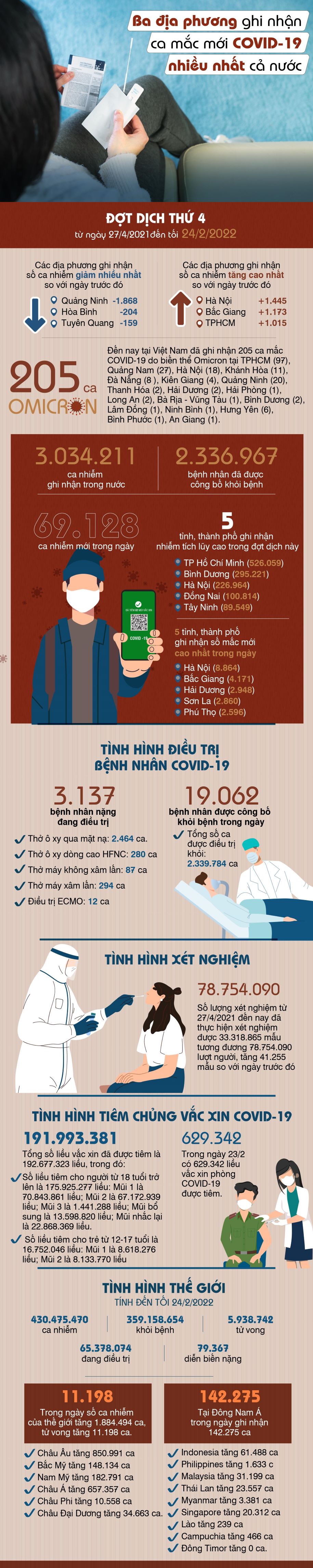 25/02/2022 15:36Ba địa phương ghi nhận ca mắc mới COVID-19 nhiều nhất cả nước