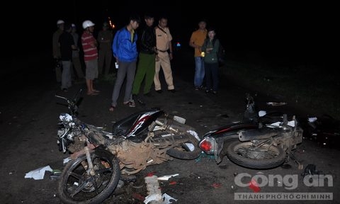 Hai xe máy đấu đầu khiến một người chết tại chỗ - Ảnh: Đại Việt |