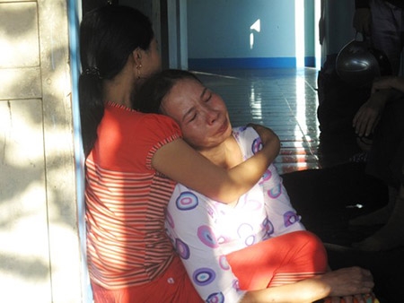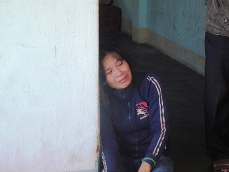 Chị Lê Thị Thương khóc không thành tiếng trước sự ra đi của Hải. |