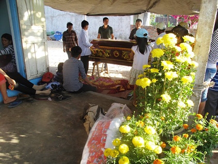 Nhìn chiếc quan tài được đặt cạnh các chậu hoa vạn thọ, hoa cúc mà anh Thoại vừa mua về chưa kịp chưng Tết, ai nấy cũng nghẹn ngào.