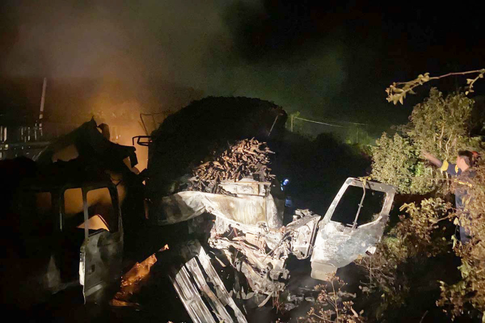 Vụ tai nạn làm 3 xe tải cùng bị bốc cháy, hư hỏng nặng. Tài xế Trần Văn Nho bị mắc kẹt trong cabin và được người dân phá cửa xe, đưa đi cấp cứu.