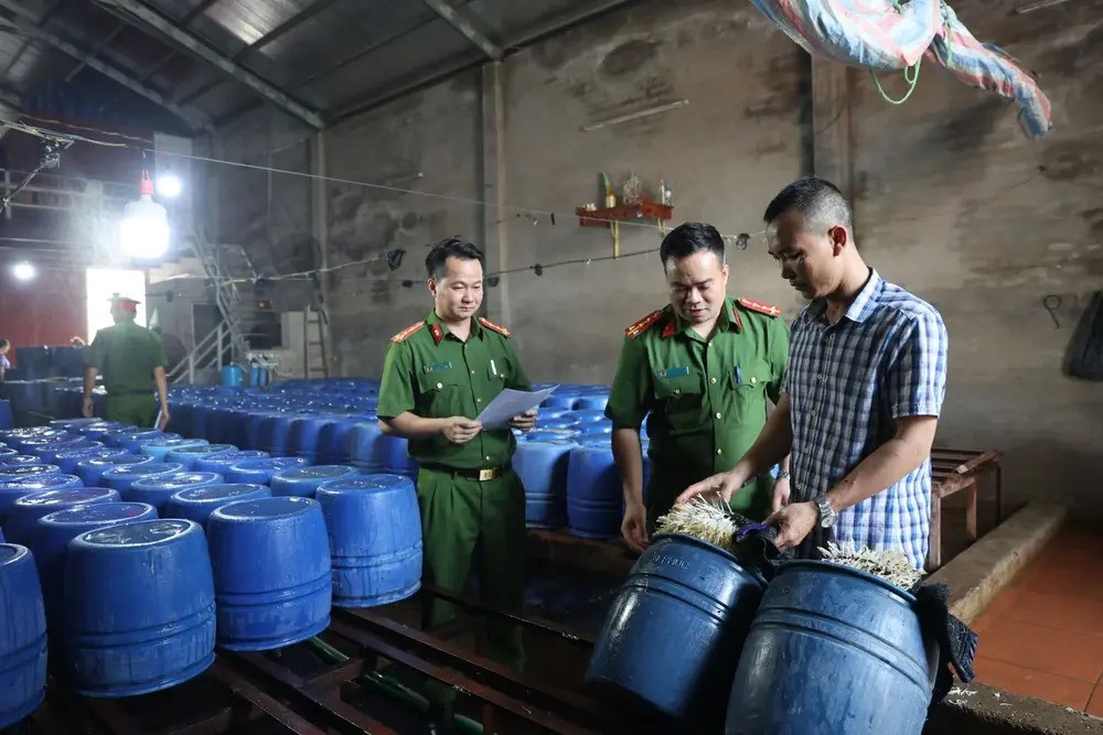 Tại hiện trường, lực lượng chức năng thu giữ hơn 2 tấn giá đỗ đang trong quá trình nảy mầm từ 1 đến 4 ngày tuổi, cùng nhiều vật dụng và hóa chất phục vụ sản xuất như lu nhựa, mê giá, thanh kim loại, túi nilon chứa chất bột màu trắng, dung dịch không nhãn mác…