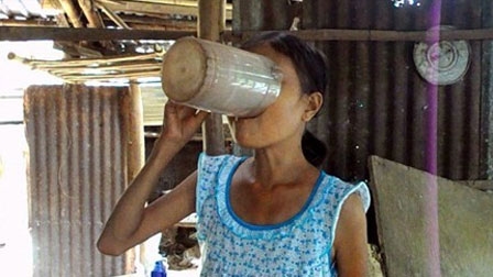 Như Ý uống hàng chục lít nước chỉ trong ít phút. Ảnh cắt từ video clip của Nguyễn Trang. |