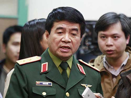 Trung tướng Võ Văn Tuấn, Phó Tổng tham mưu trưởng Quân đội nhân dân Việt Nam, bác thông tin nói máy bay rơi tại quần đảo Trường Sa - Ảnh: Văn Duẩn |