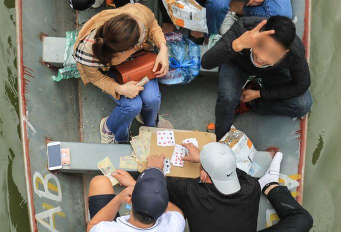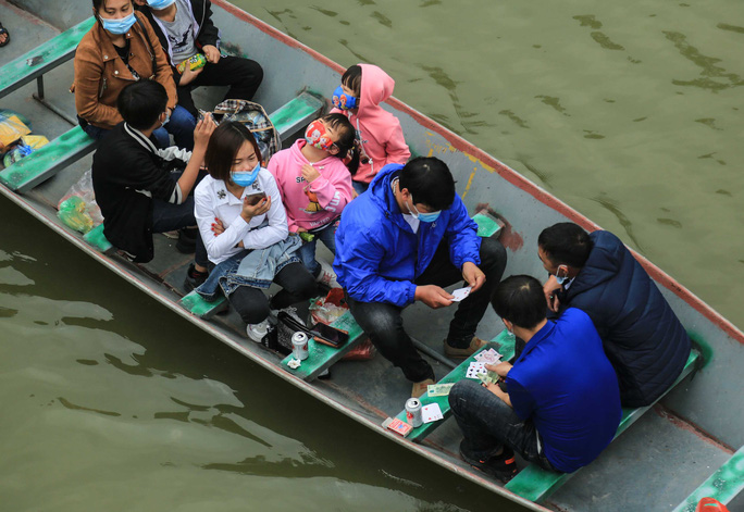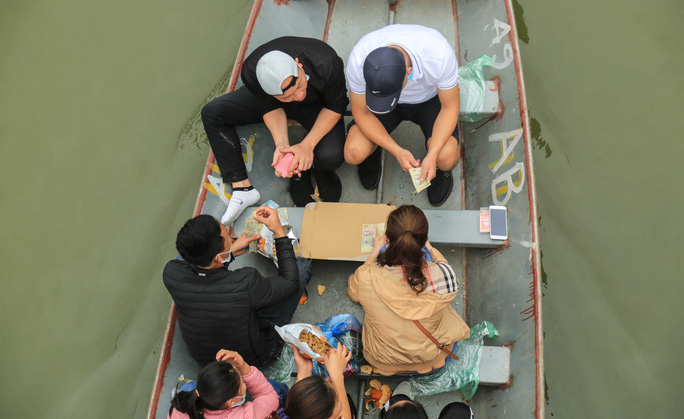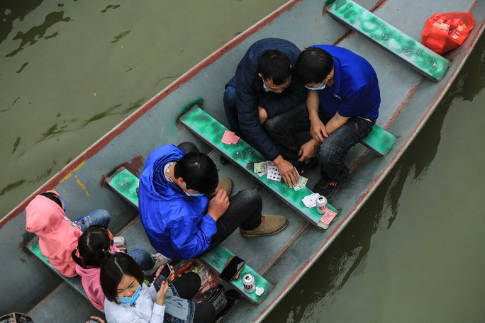 Một số hình ảnh ghi nhận người dân "vô tư" đánh bài trên thuyền ở chùa Hương: