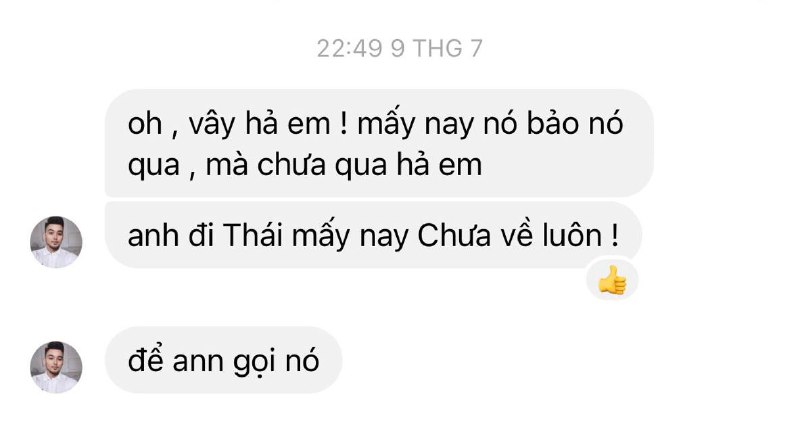 Cũng theo Mai Quỳnh chia sẻ, trong khoảng thời gian đầu tháng 7 khi đang công tác tại Thái Lan, nam makeup artist cũng trực tiếp nhắn tin, gọi điện cho cô để xin việc cho em trai. Mai Quỳnh cho biết, Phú Gia Gia rất lo lắng, quan tâm và muốn em trai có thể làm việc tại chỗ của chồng cô nên đã luôn sát sao nhờ giúp đỡ.