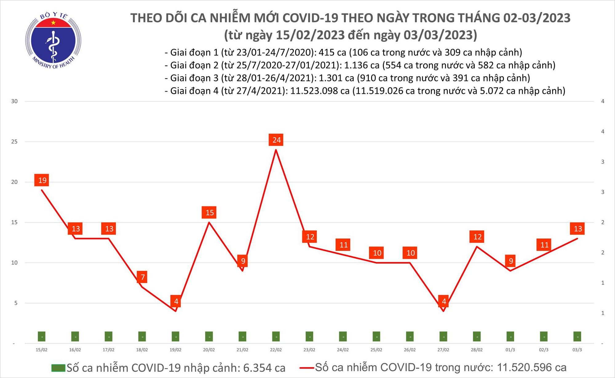 04/03/2023 01:25Bản tin Covid-19 chiều 3/3: Ca nhiễm mới trên cả nước tăng nhẹ, vẫn có bệnh nhân nặng phải chăm sóc đặc biệt