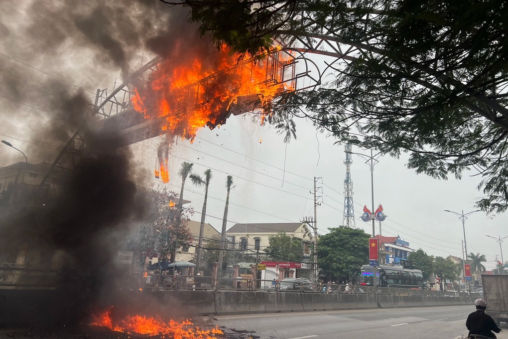 Do bảng điện tử led có nhiều vật liệu dễ cháy nên ngọn lửa nhanh chóng lan rộng ra. Vụ cháy làm nhiều tàn lửa rơi xuống mặt đường quốc lộ ở cả 2 chiều khiến các phương tiện không thể lưu thông qua lại.