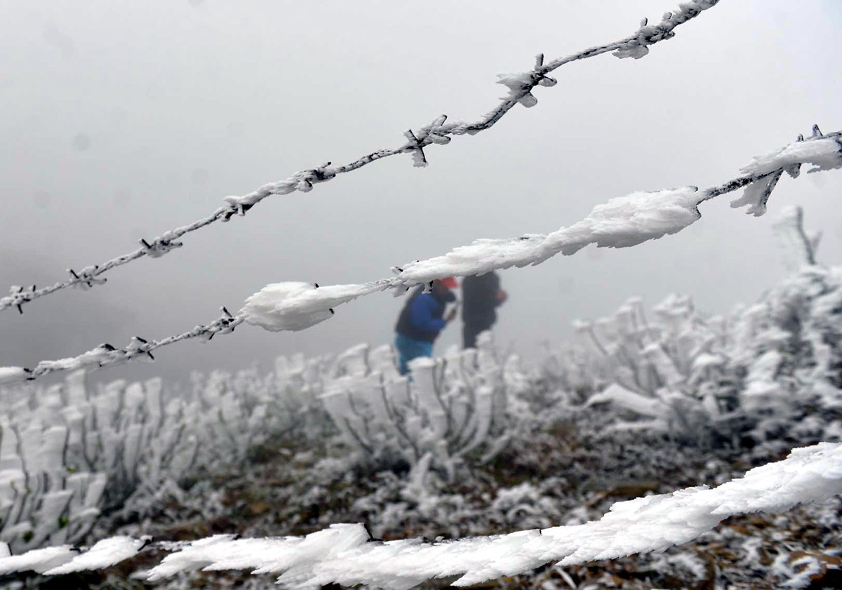 Dưới đây là một số hình ảnh băng tuyết và du khách kéo lên đỉnh Mẫu Sơn:
