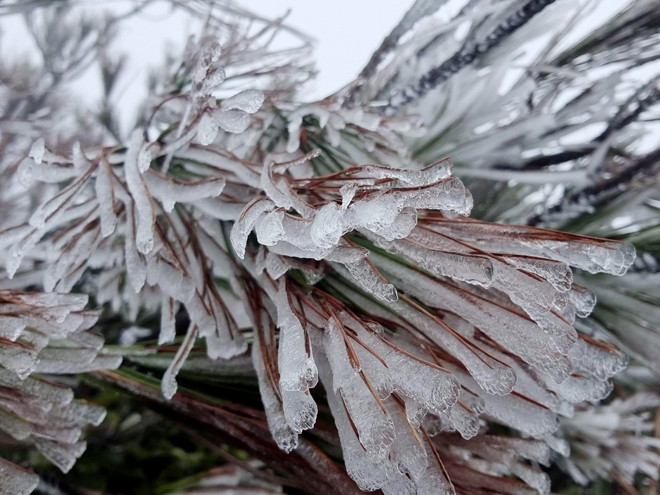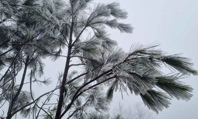 Trong khi đó tại tỉnh Lào Cai, núi rừng Fansipan ở độ cao khoảng 2.800m cũng bắt đầu xuất hiện băng tuyết. Nhiều du khách có cơ hội chiêm ngưỡng khung cảnh kỳ thú như phong cảnh châu Âu khi những cánh rừng Hoàng Liên trên độ cao từ gần 3.000m băng tuyết phủ trắng như dát bạc.