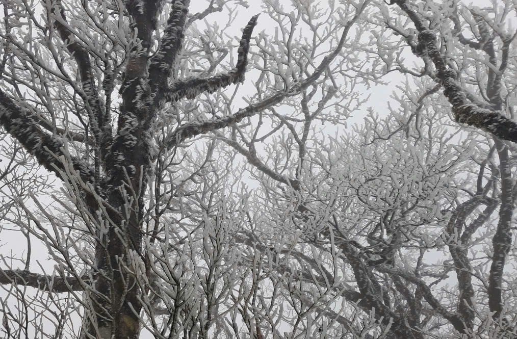 Từ sáng sớm, khu vực đỉnh núi Phja Oắc gió thổi mạnh, trời rét buốt. Đến khoảng 8 giờ, băng giá bắt đầu hình thành, bám chặt trên các cành cây. Càng về trưa, gió càng thổi mạnh, lớp băng đóng trên cây càng dày hơn.