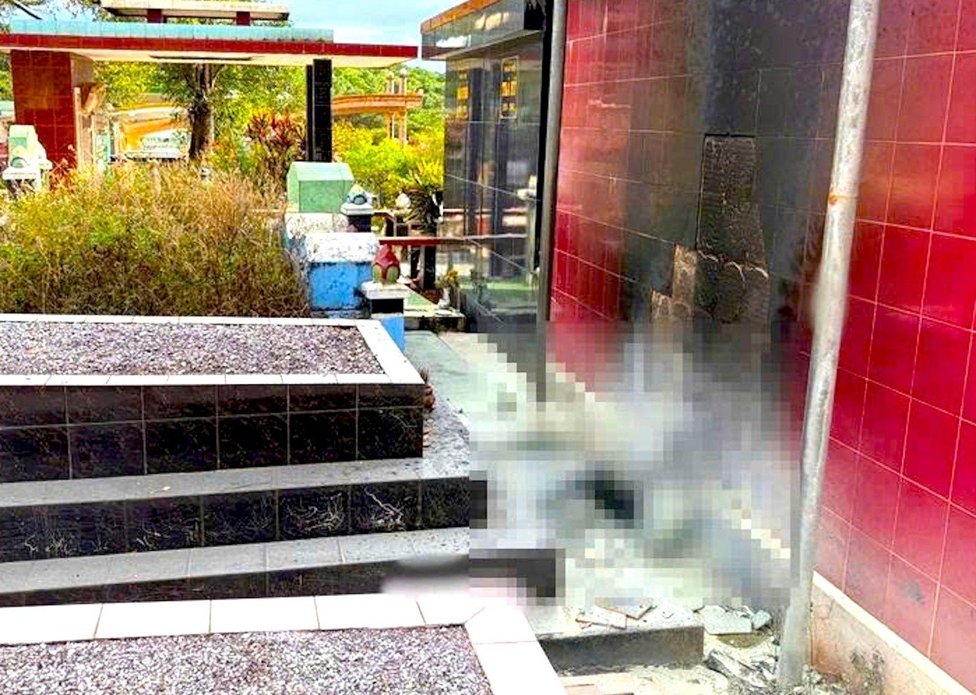 Ngay lập tức, thông tin được trình báo lên cơ quan công an. Tại hiện trường, hình ảnh để lại khiến nhiều người không khỏi ám ảnh: thi thể nạn nhân nằm trong tư thế ngồi, dựa lưng vào bức tường của một ngôi mộ. Do ngọn lửa bốc cháy quá mạnh, phần lớn thi thể đã bị thiêu rụi hoàn toàn, chỉ còn sót lại phần cẳng chân. Chính vì mức độ biến dạng nghiêm trọng này, lực lượng chức năng hiện vẫn chưa thể xác định được giới tính cũng như độ tuổi của nạn nhân.