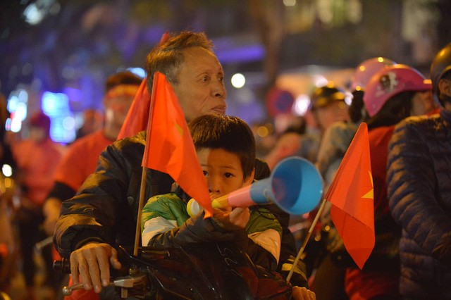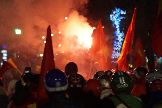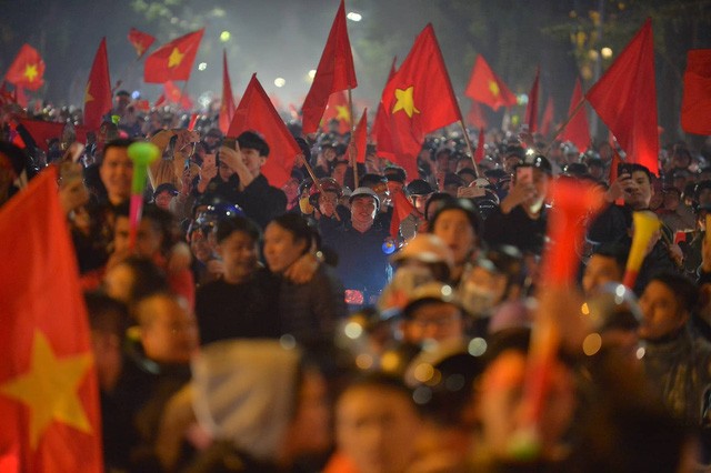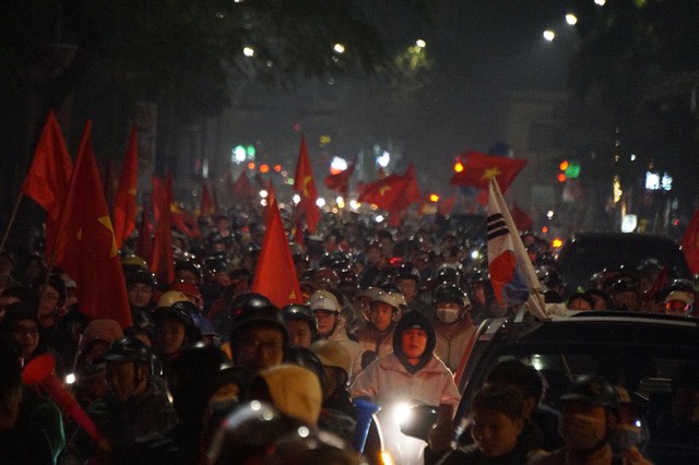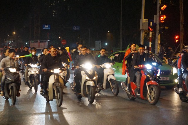 Ngay sau khi tiếng còi kết thúc trận chung kết bóng đá nam vang lên, hàng nghìn CĐV Thủ đô đã đồng loạt đổ ra đường "đi bão" ăn mừng chiến thắng của đội tuyển U22 Việt Nam.