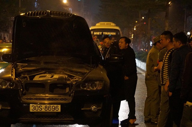 Trong khi đó, một chiếc ô tô hạng sang có biểu hiện bị chập cháy, bốc khói trên phố Kim Mã khiến giao thông tê liệt. Nhiều cảnh sát, dân quân tự vệ tới hỗ trợ sau đó.