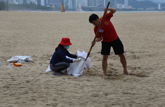 "Nhà tôi dưới chân núi, rất dễ sập nếu bão đổ bộ. Tôi rất lo lắng", anh Đào Văn Trí (30 tuổi, ở TP Nha Trang) nói khi cùng vợ lái xe tải chở 50 bao cát về dằn mái căn cấp bốn ở xã Phước Đồng, cách đó bãi biển chừng 5 km.