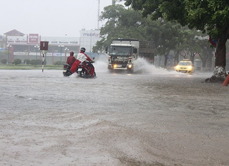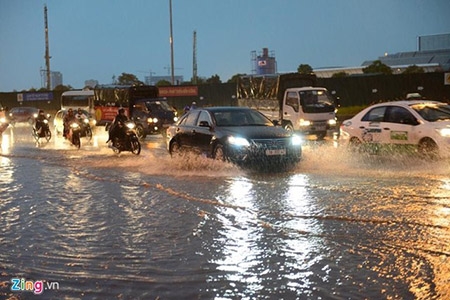 Đường Phạm Hùng mênh mông nước. (Ảnh: Zing) |