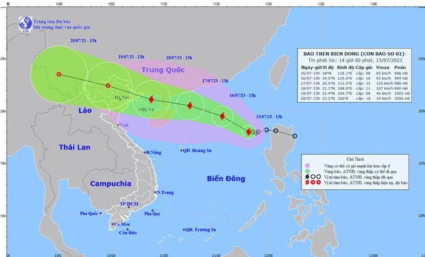 Dự báo, bão tiếp tục mạnh lên với cường độ mạnh nhất cấp 11-12, giật cấp 15 (ngày 17/7) và đi vào phía Bắc vịnh Bắc Bộ với cường độ cấp 10-11, giật cấp 13 (ngày 18/7). Đây là cơn bão đầu tiên năm 2023 có cường độ mạnh và dự kiến đổ bộ vào khu vực Bắc Bộ.