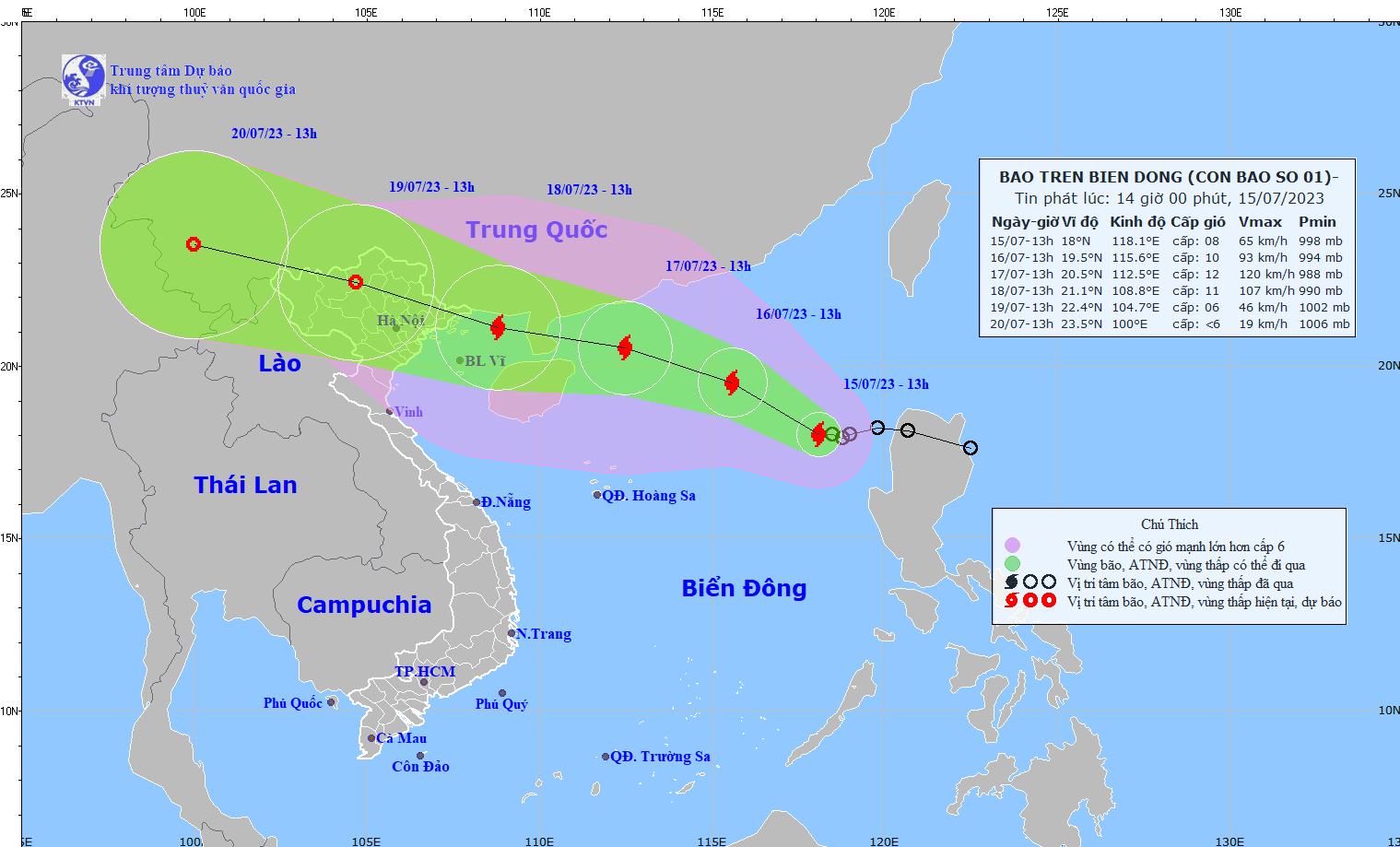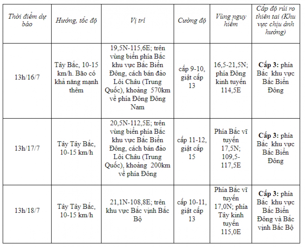 Hồi 13 giờ, vị trí tâm bão ở vào khoảng 18,0 độ Vĩ Bắc; 118,1 độ Kinh Đông, cách bán đảo Lôi Châu (Trung Quốc) khoảng 880km về phía Đông Đông Nam. Sức gió mạnh nhất vùng gần tâm bão mạnh cấp 8 (62-74km/giờ), giật cấp 10.